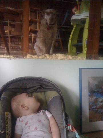 Now, back to the daddy stalking. Ben is no longer allowed to speak within hearing distance while Nora is eating or any hope of a complete meal is lost! She watches him sleep and waits for the moment he opens his eyes and squeals!