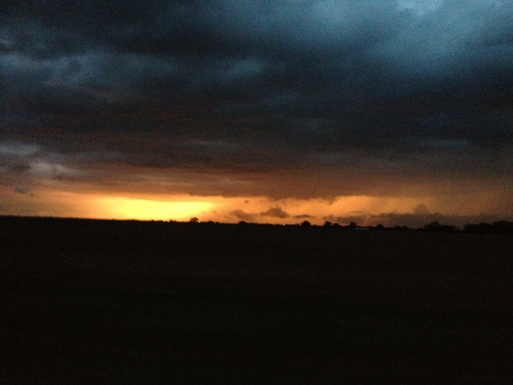 It’s not the best picture ever, but I tried to capture the sunset in front of us and the complete, stormy darkness behind us. The weather quickly rolls in and wreaks havoc, then sweeps along down the plains…